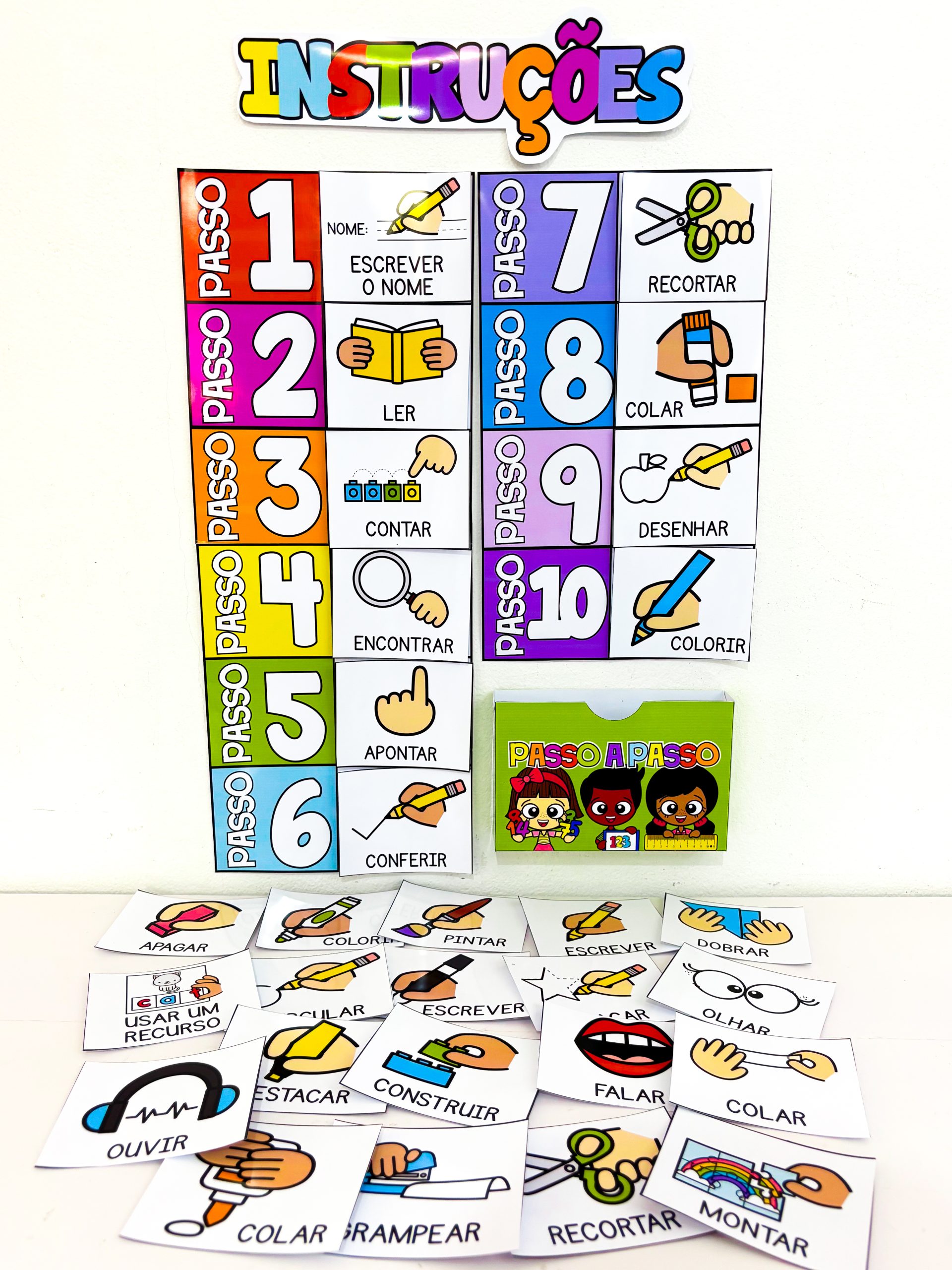Com esse apoio visual, os alunos têm um guia completo de como executar as tarefas, o que reduz dúvidas e aumenta a confiança deles durante o processo. Ideal para manter a organização na sala de aula, incentivar o foco e tornar o aprendizado mais fluido e dinâmico.
